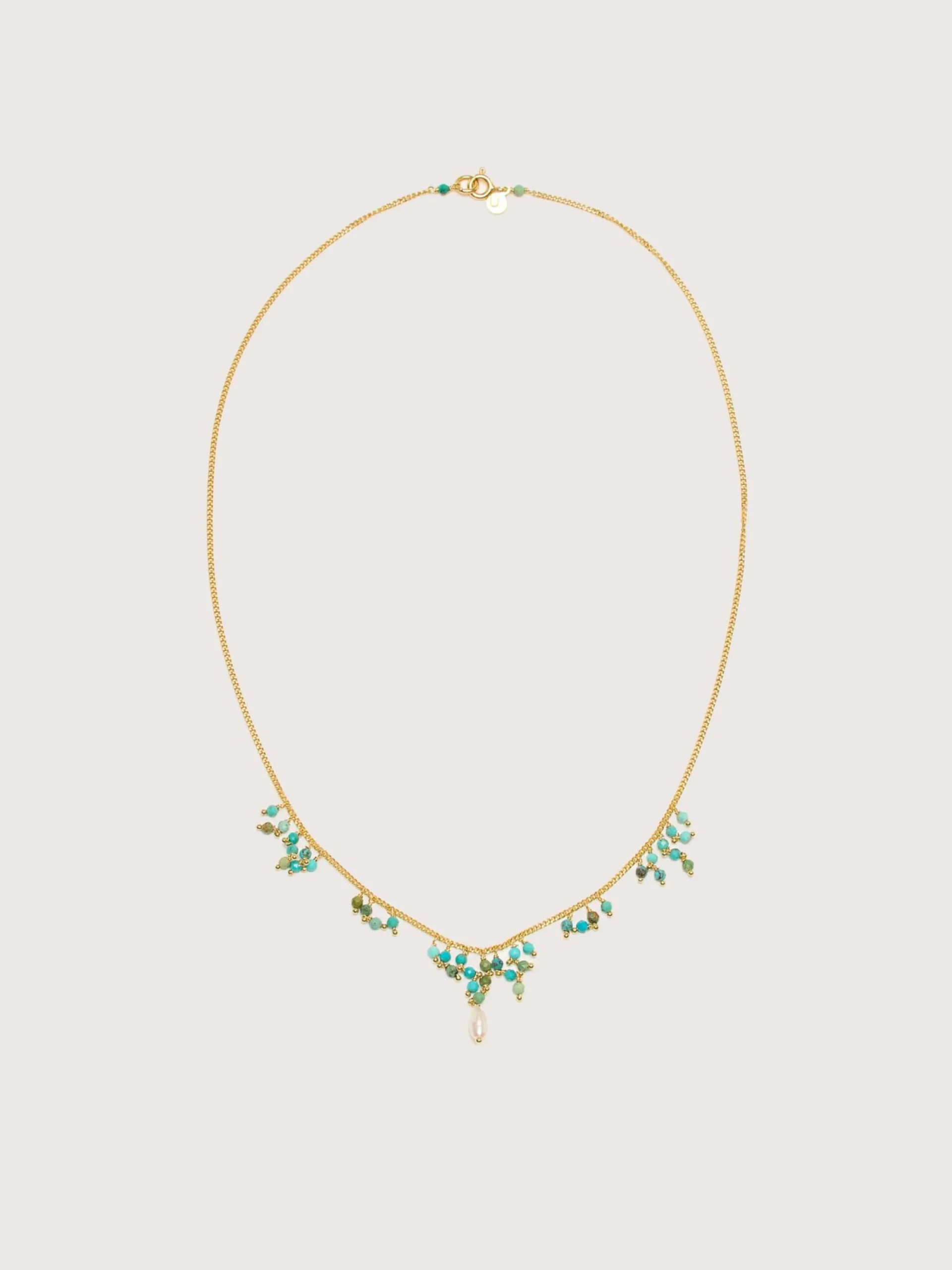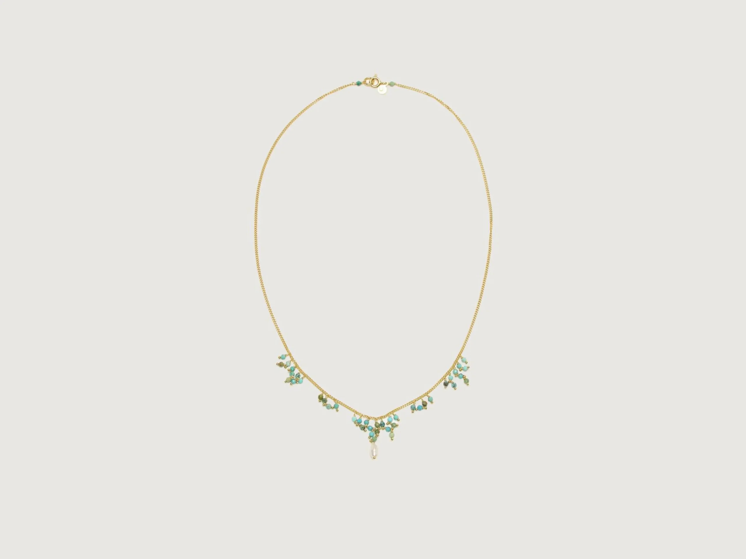 De Untitledition Acquadolce ketting is een gouden vermeil micro ketting versierd met handgemaakte messing kralen, toermalijn en een mix van natuurlijke stenen.