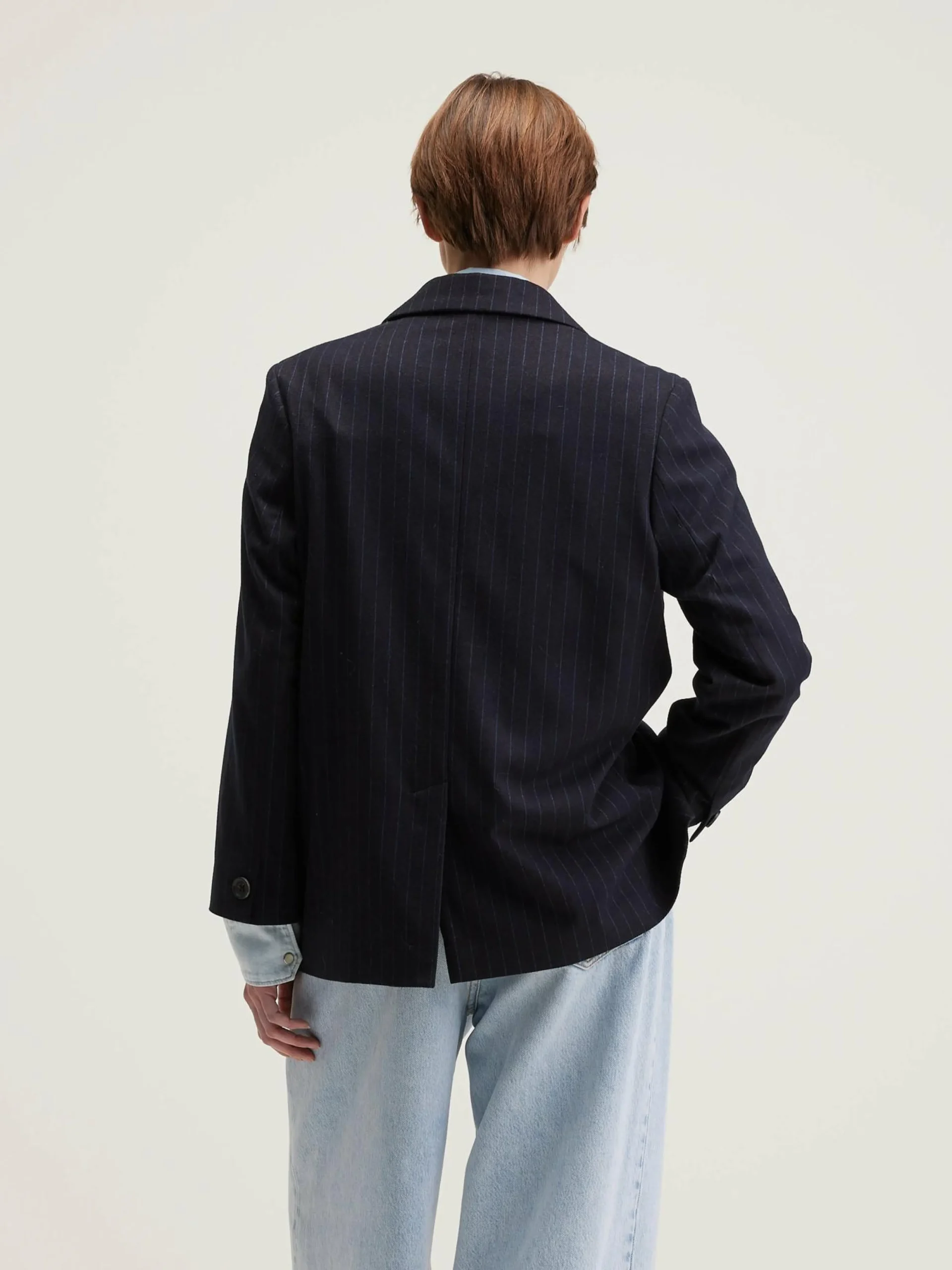 Klassieke relaxed fit flanellen blazer met krijtstreep.