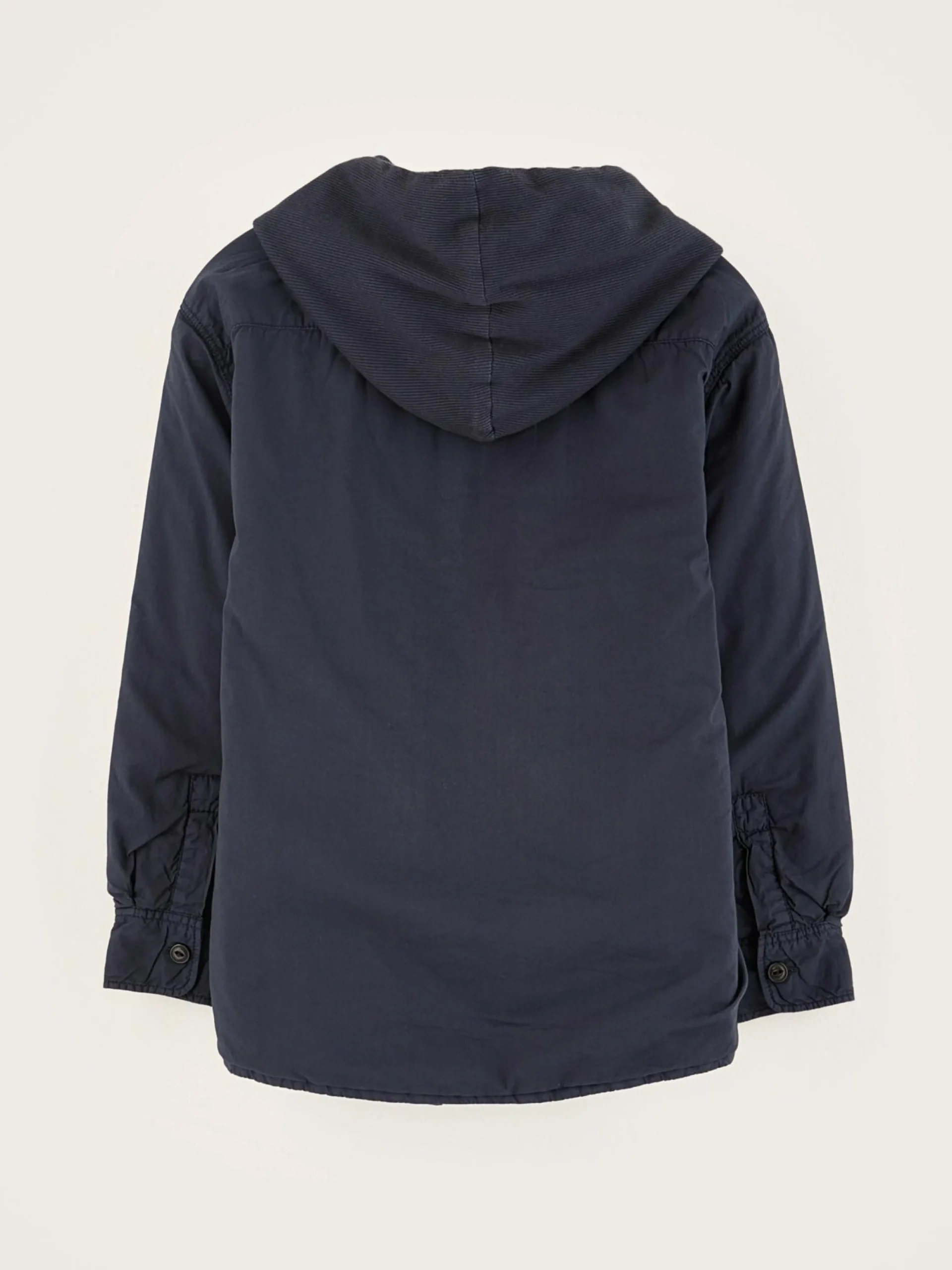 Klassiek marineblauw overshirt van popeline katoen, met een capuchon van jersey stof.