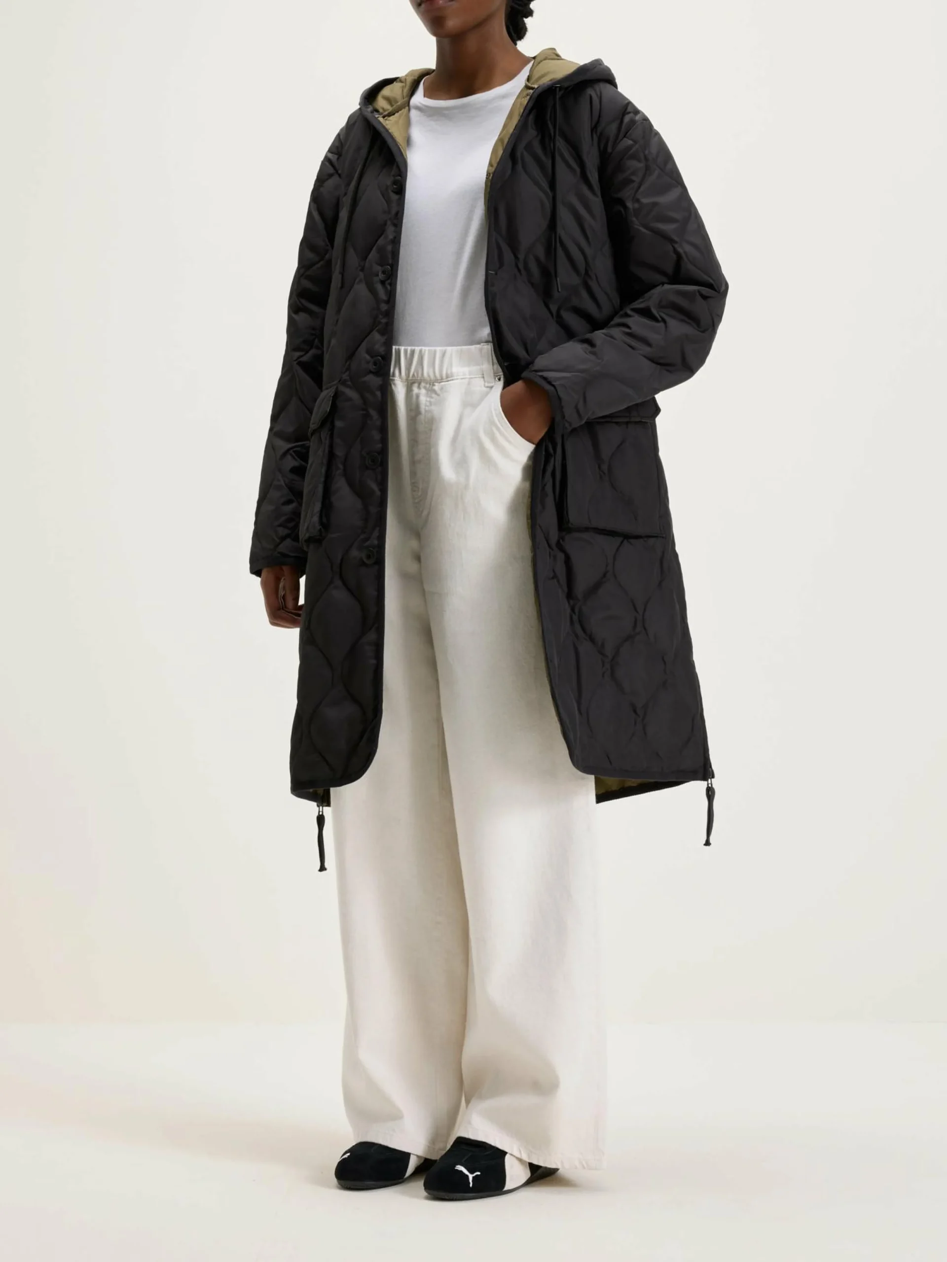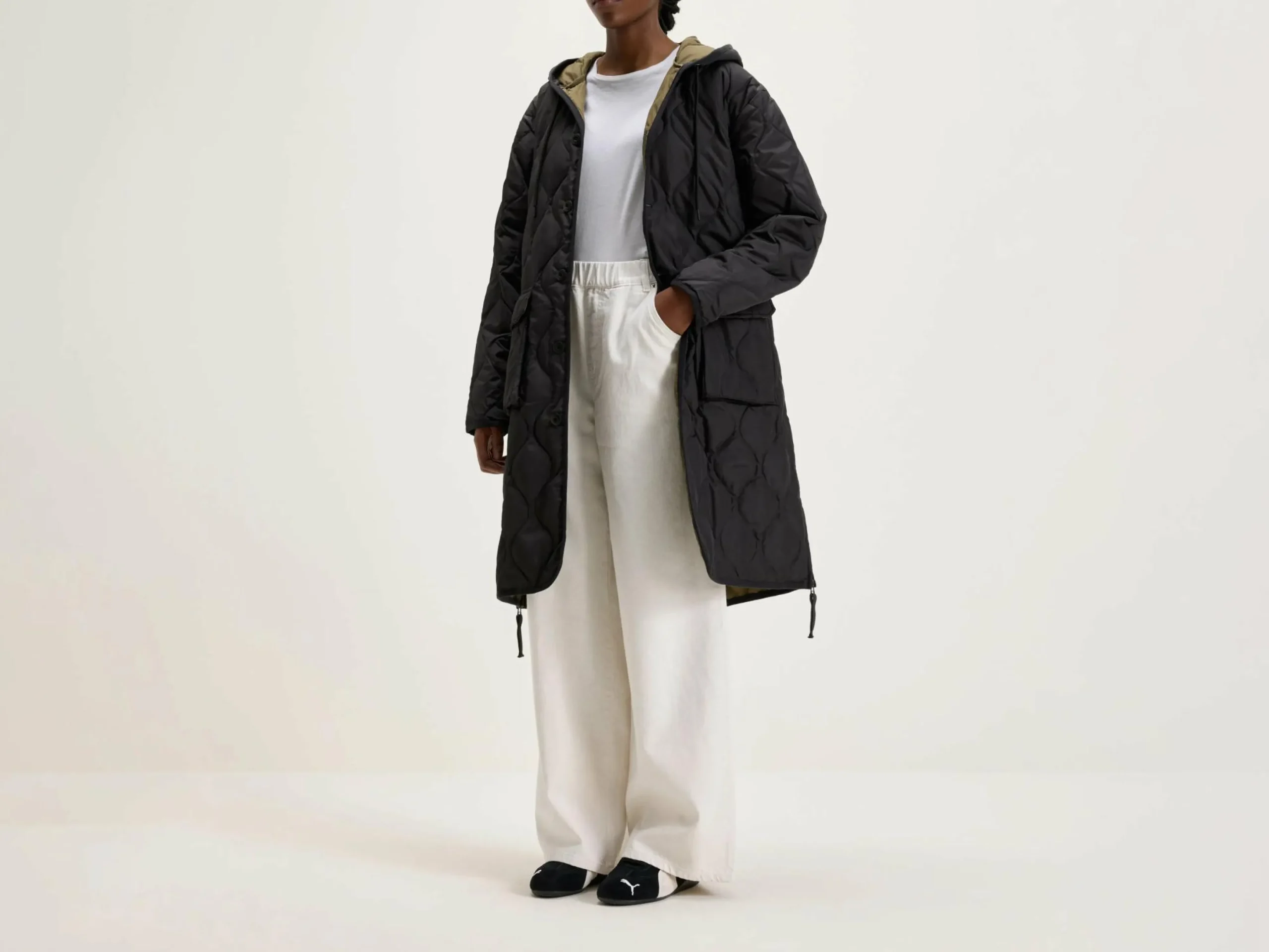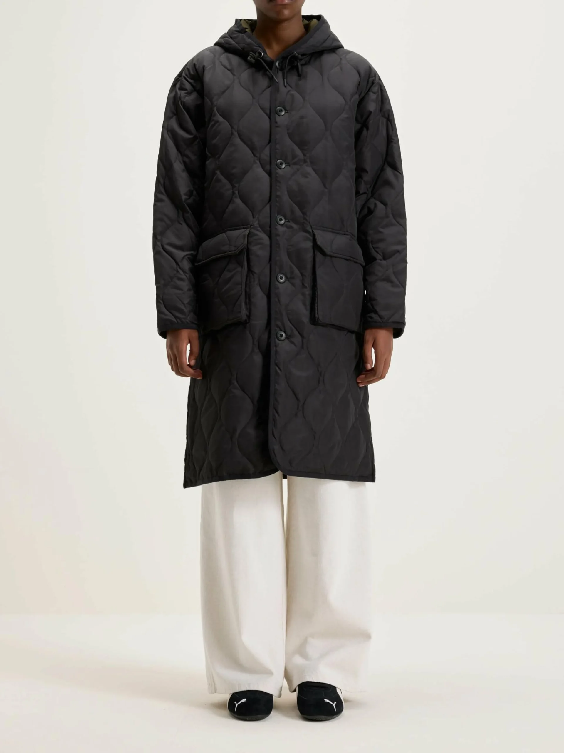 De lange militaire mantel met een kap van Taion past perfect bij lagen, met zijhandwarmerzakken en zijritsen in militaire stijl.