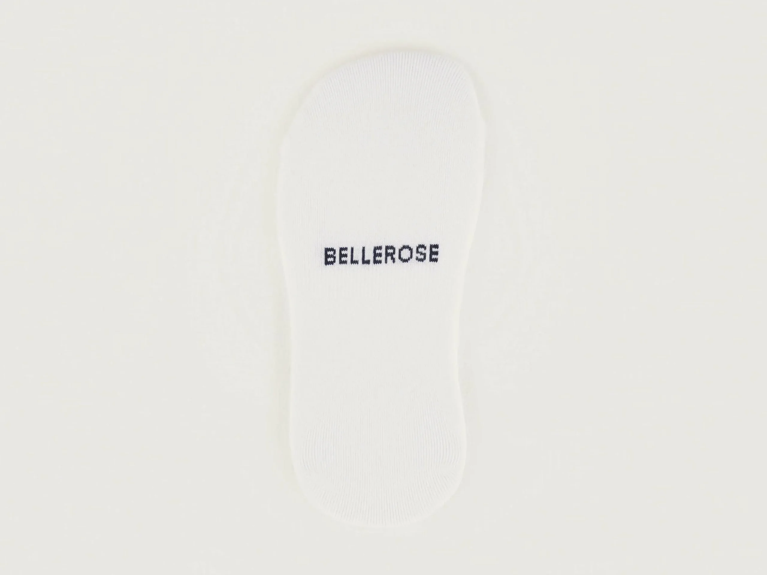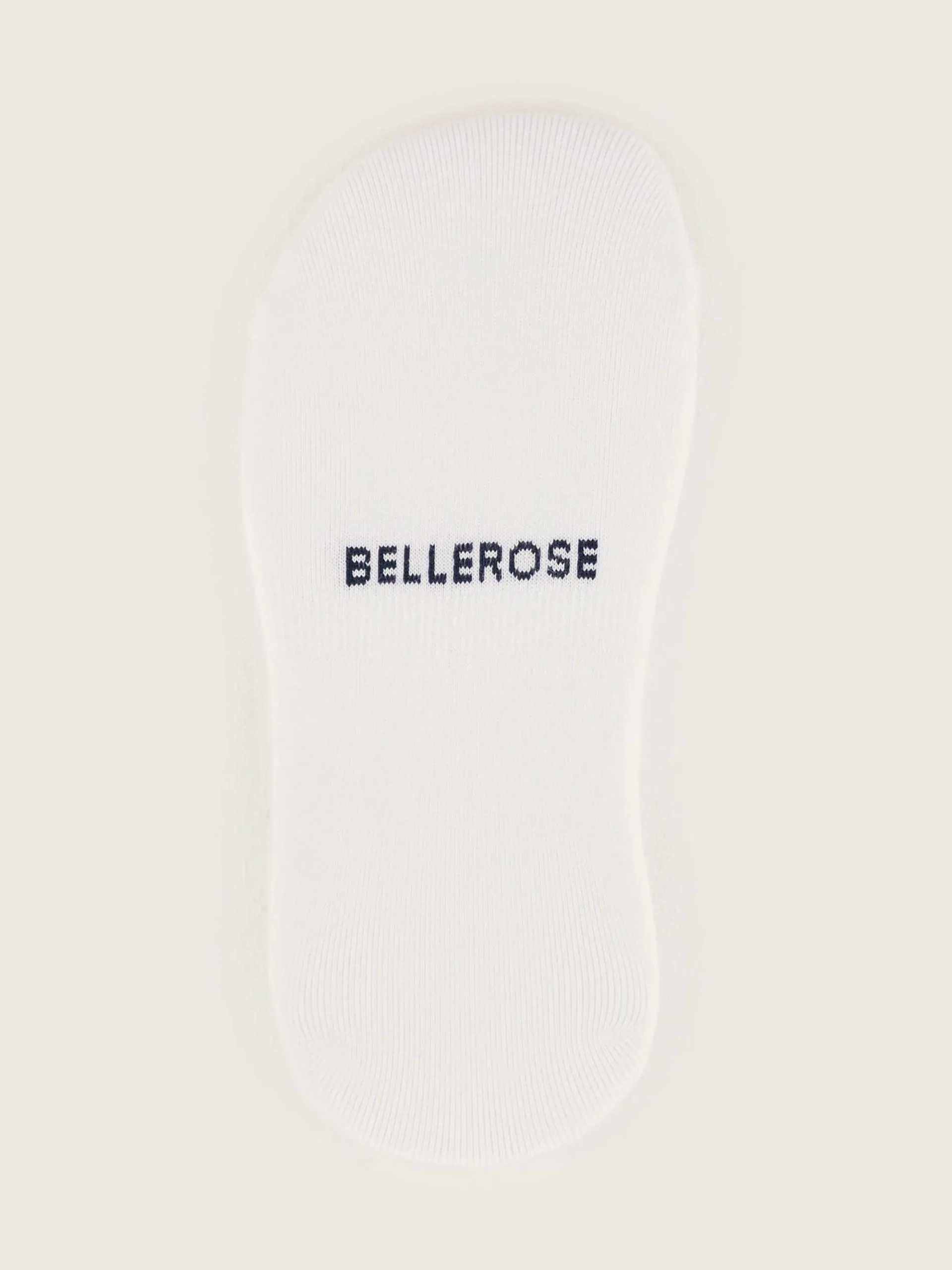 Klassieke enkelsokken in wit met geribd breisel rond de voet en antislipgum achterop de hiel.