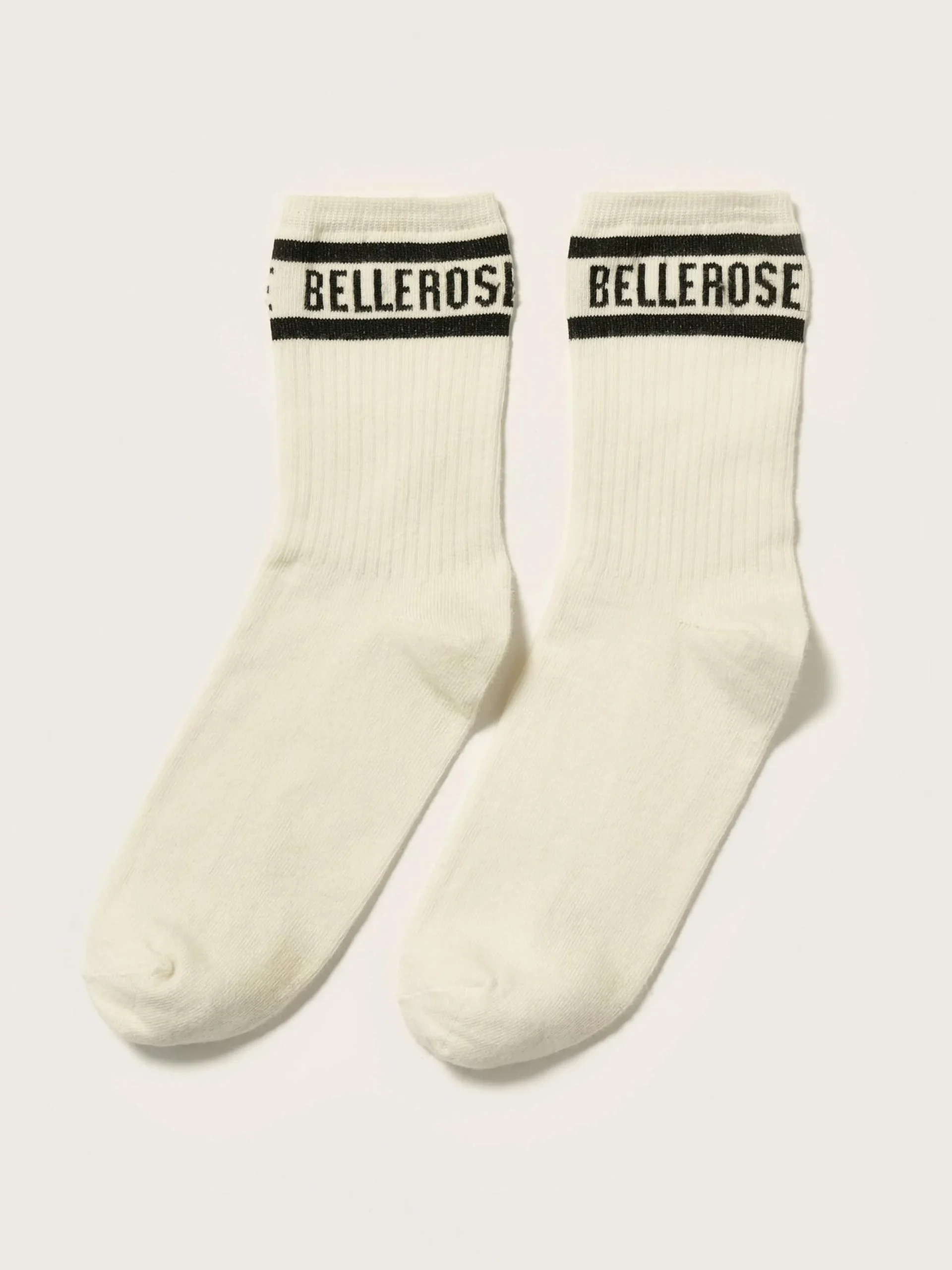 Klassieke sokken in ecru met Bellerose-logo in zwart op de enkel.