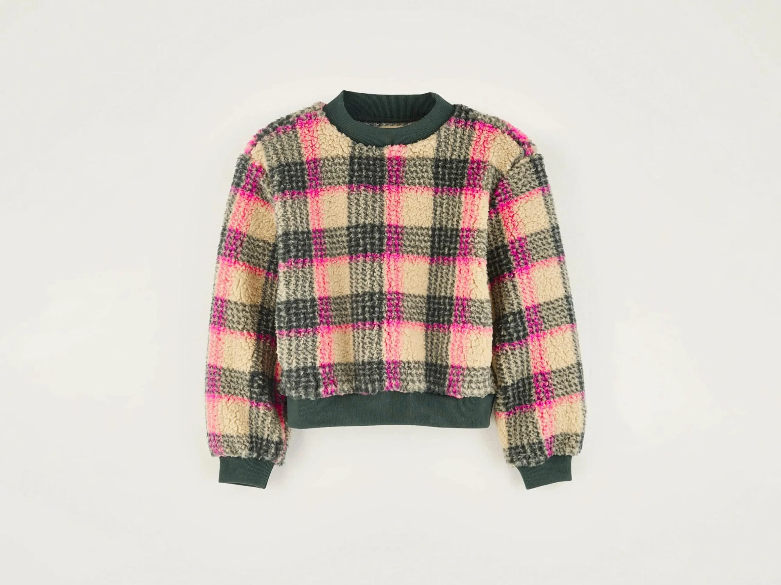 Comfortabel sweatshirt met lange mouwen, ruitjesprint op teddystof.