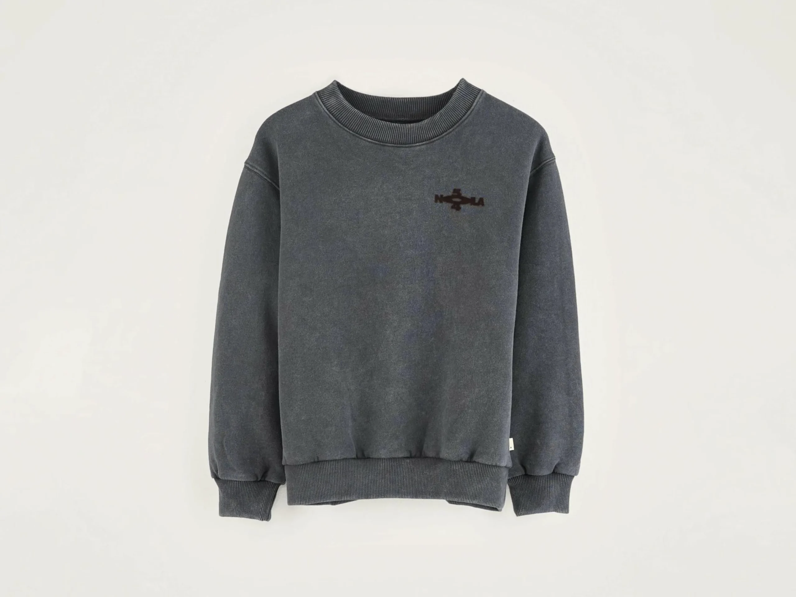 Comfortabel zwart sweatshirt van geborstelde fleece met “Big eazy”-appliqué op de borst en gespoten print op de rug.