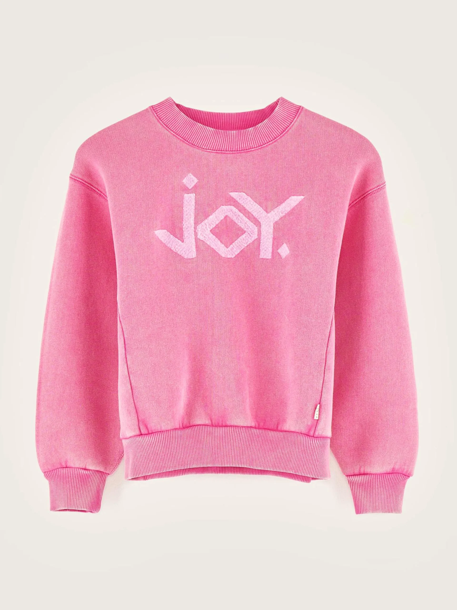 - Vilten “JOY”-bedrukking vooraan