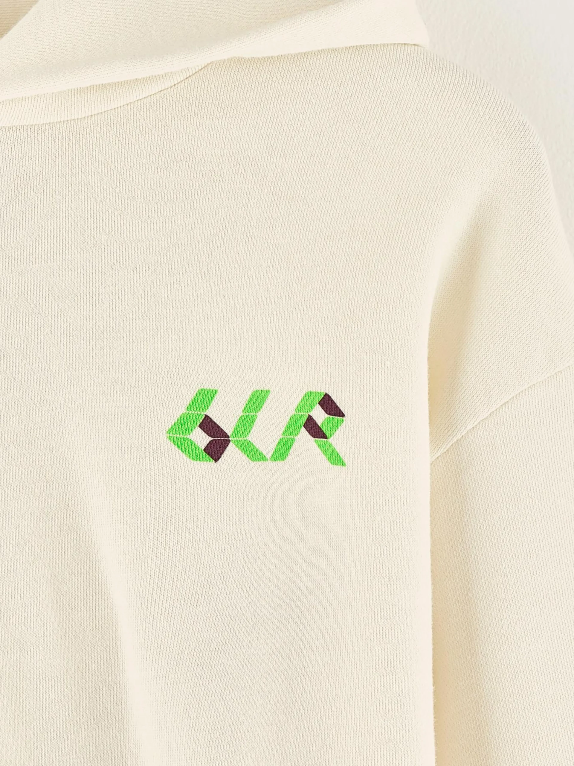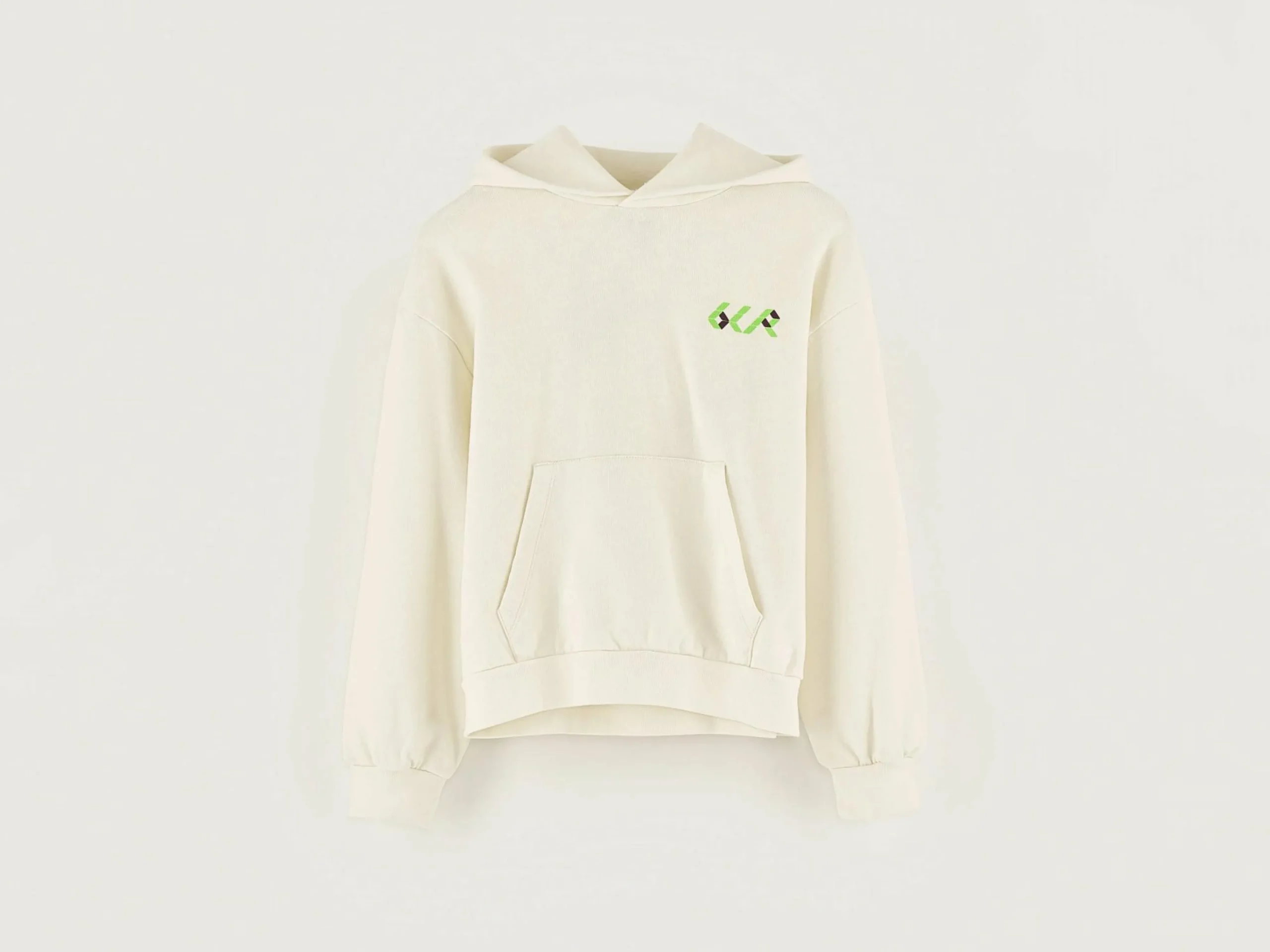 Comfortabele ecru hoodie van jerseyfleece, met BLR print op de borst en gigantische “9”-print op de rug.