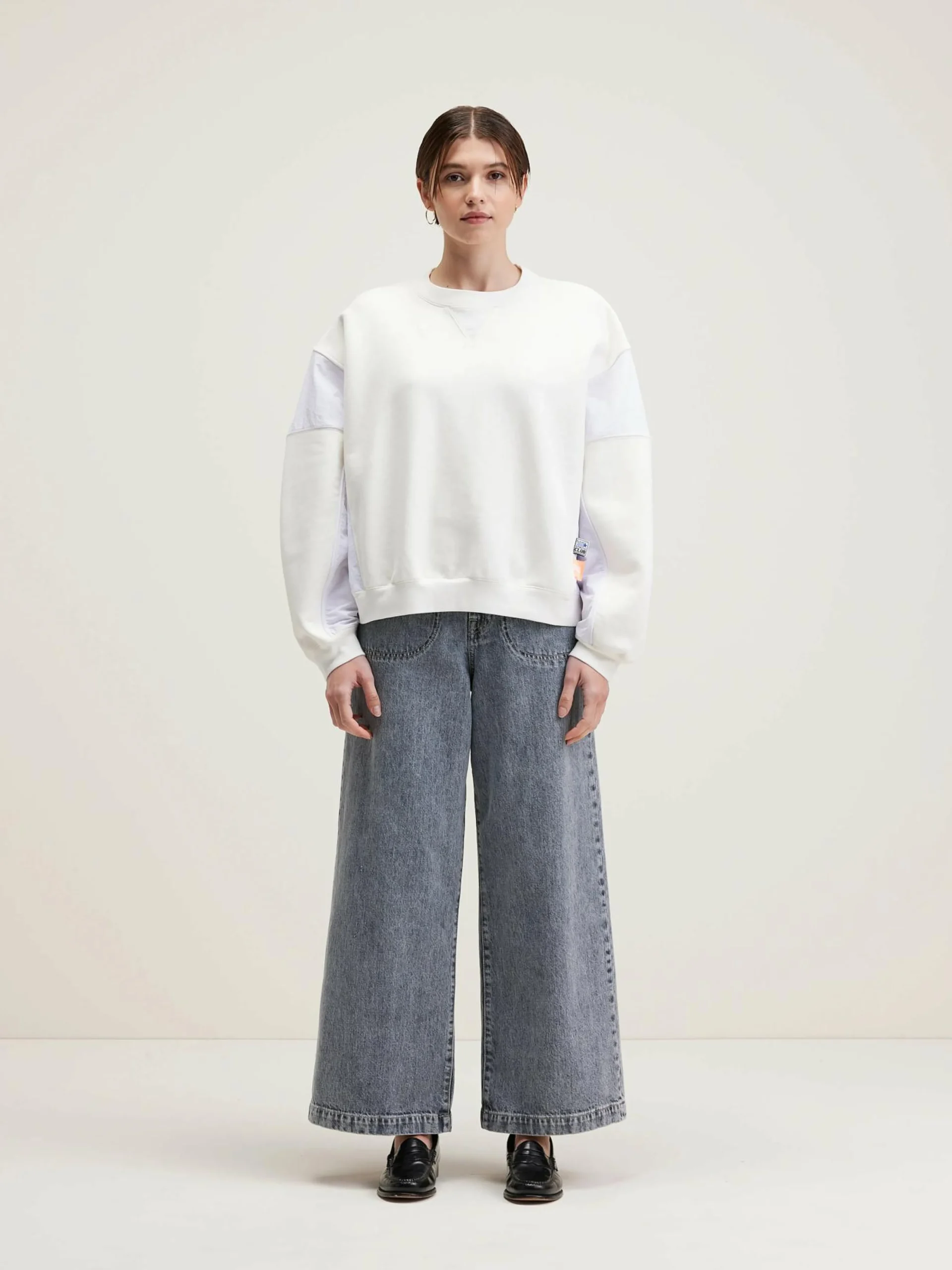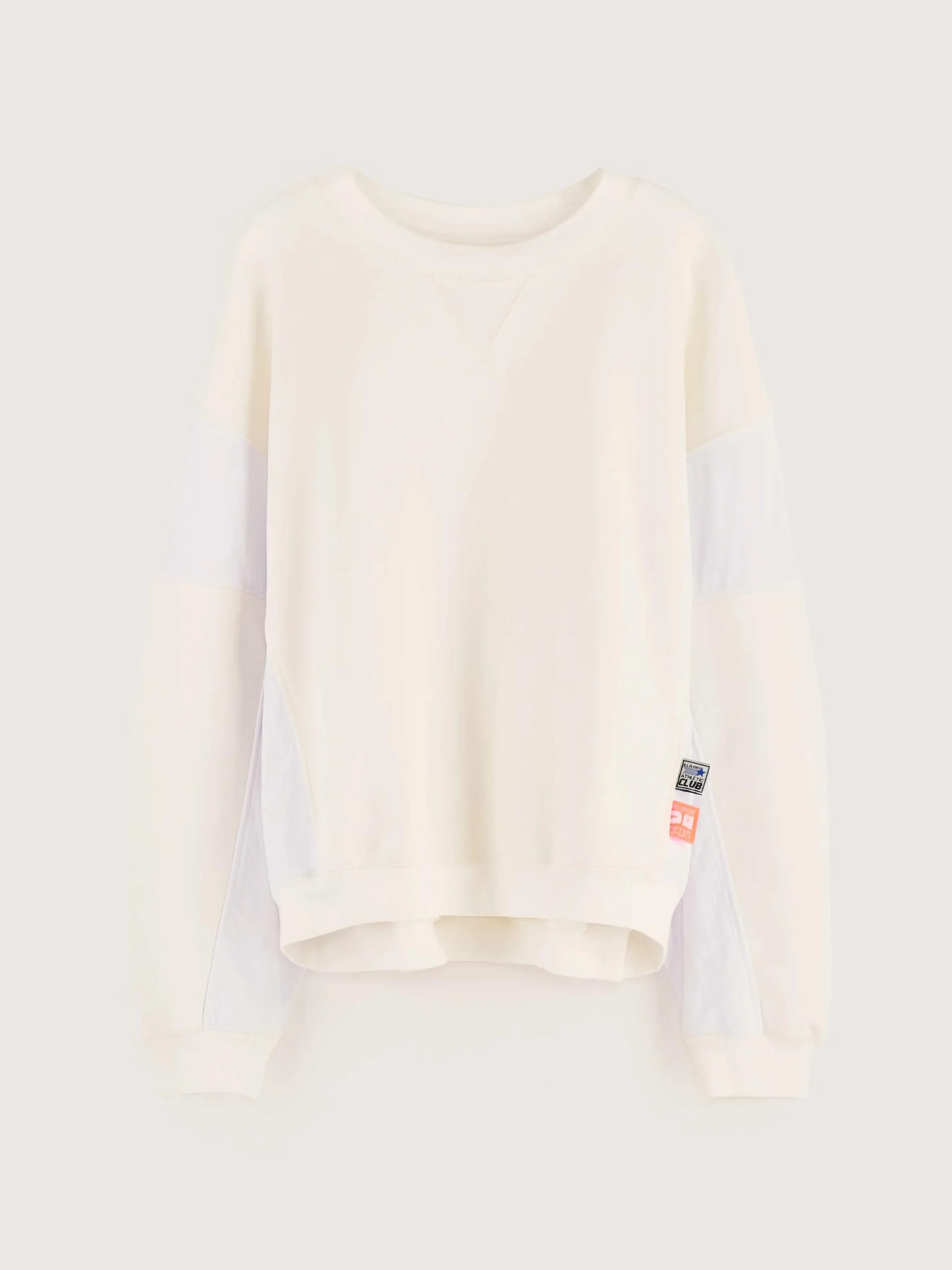 Vintagewit oversized sweatshirt met stroken van witte ripstop.