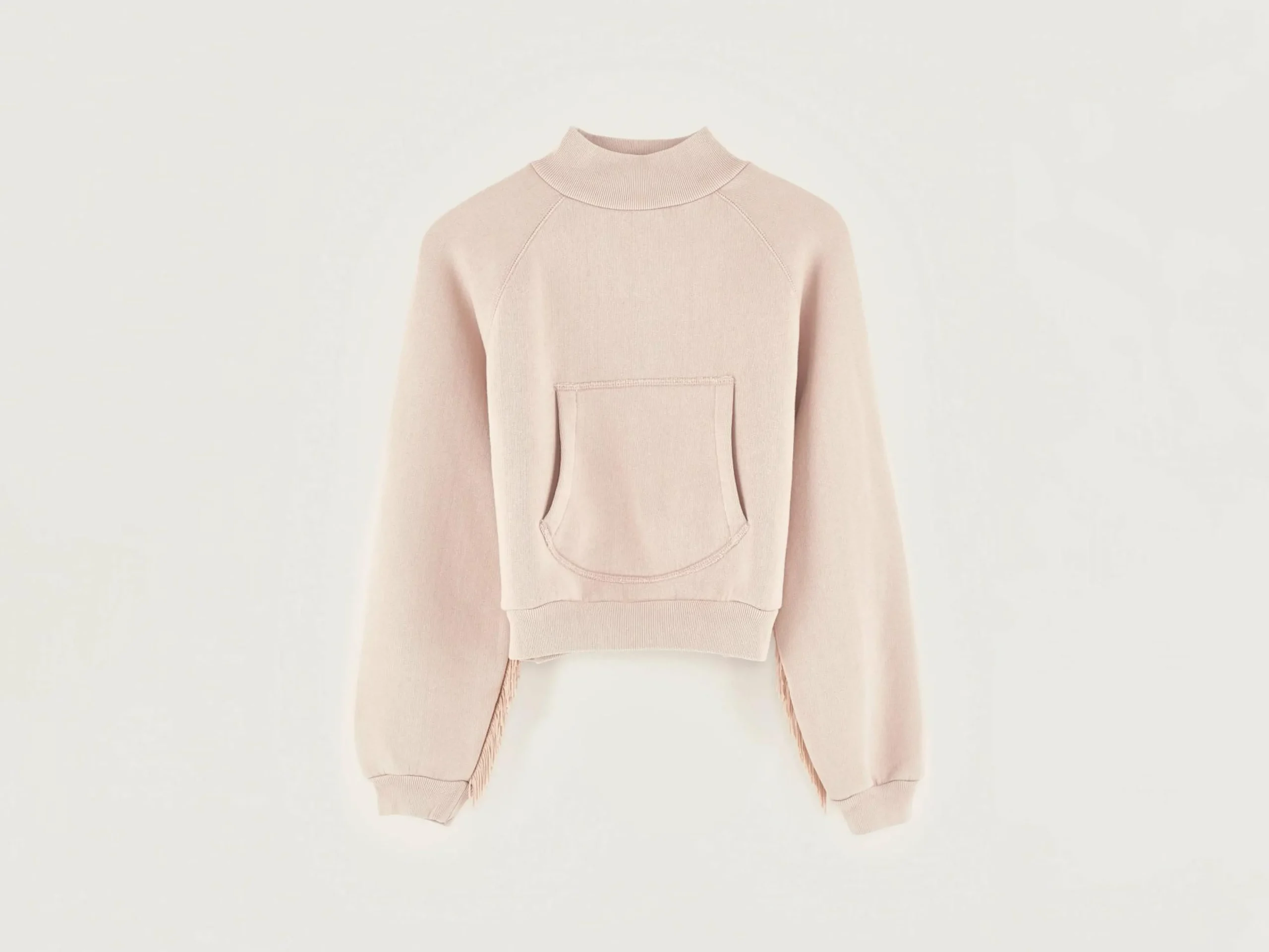 Blushroze, comfortabel sweatshirt met franjes en een opstaande kraag.