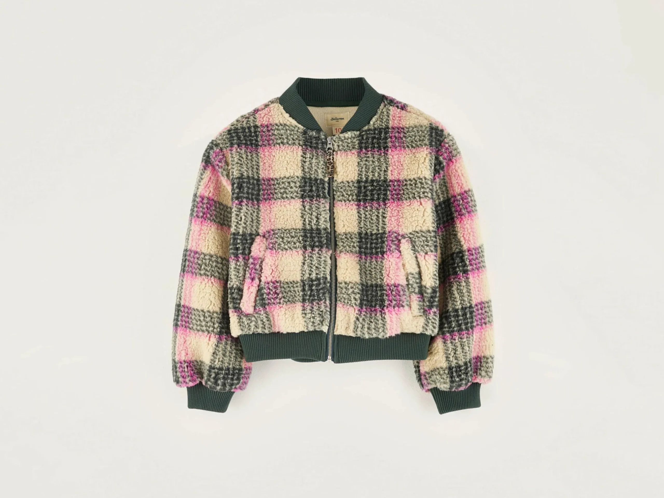 Comfortabel sweatshirt in bomberstijl, van geruite teddystof.