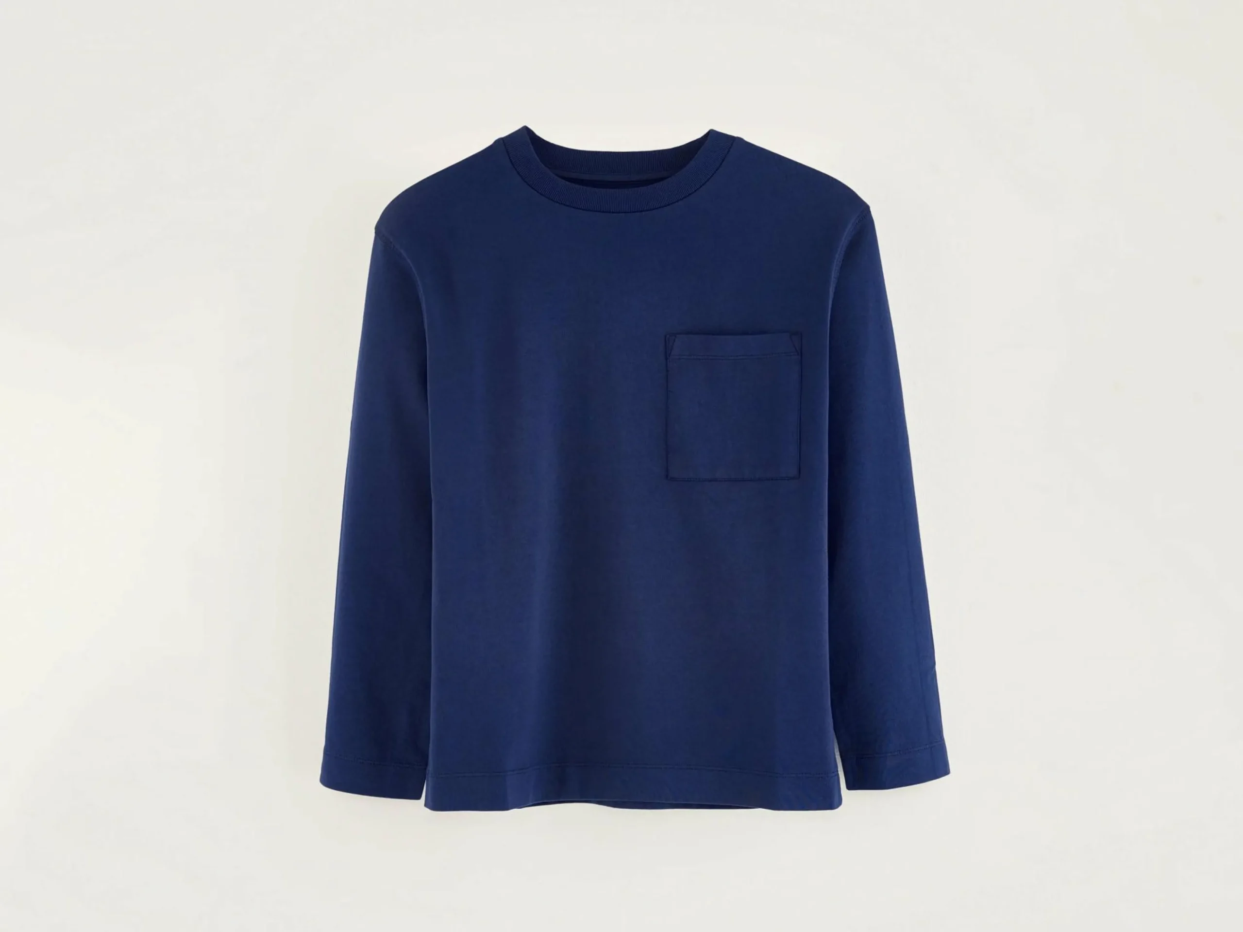 Comfortabel, cropped T-shirt met lange mouwen van kobaltblauw katoenjersey.