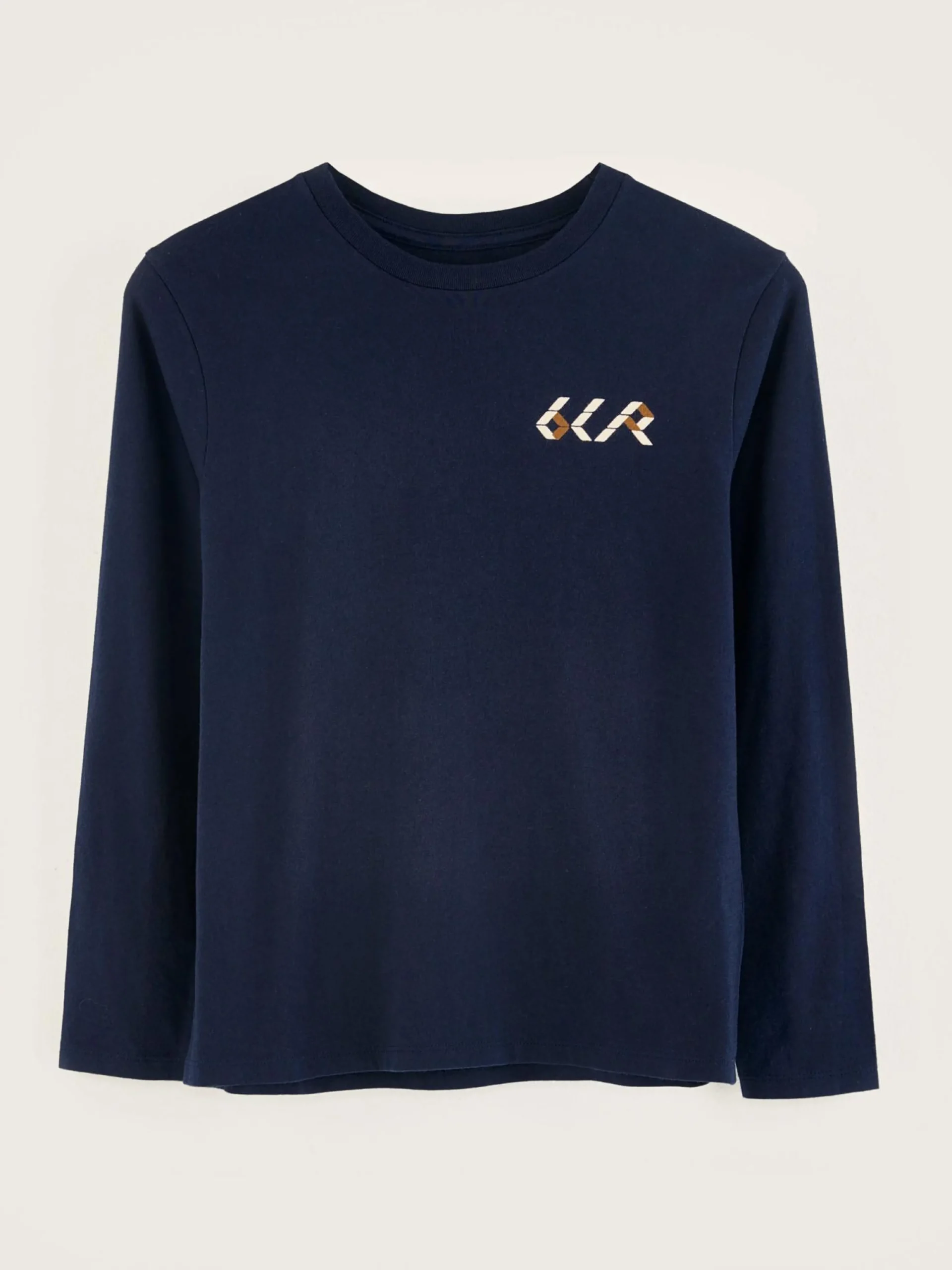 Klassiek donkerblauw T-shirt met lange mouwen, van geborstelde katoenjersey en met een gigantische “9”-print op de rug.