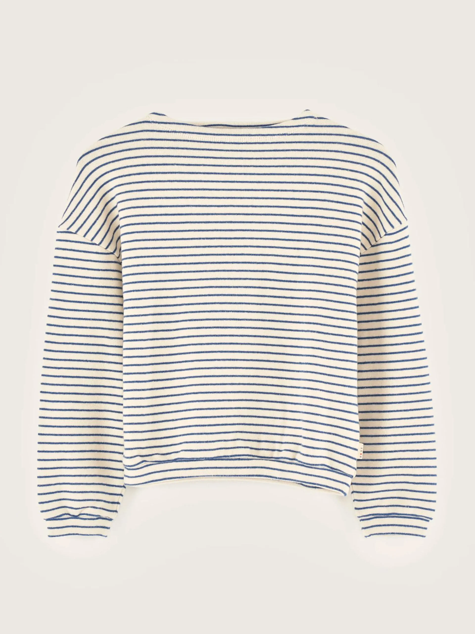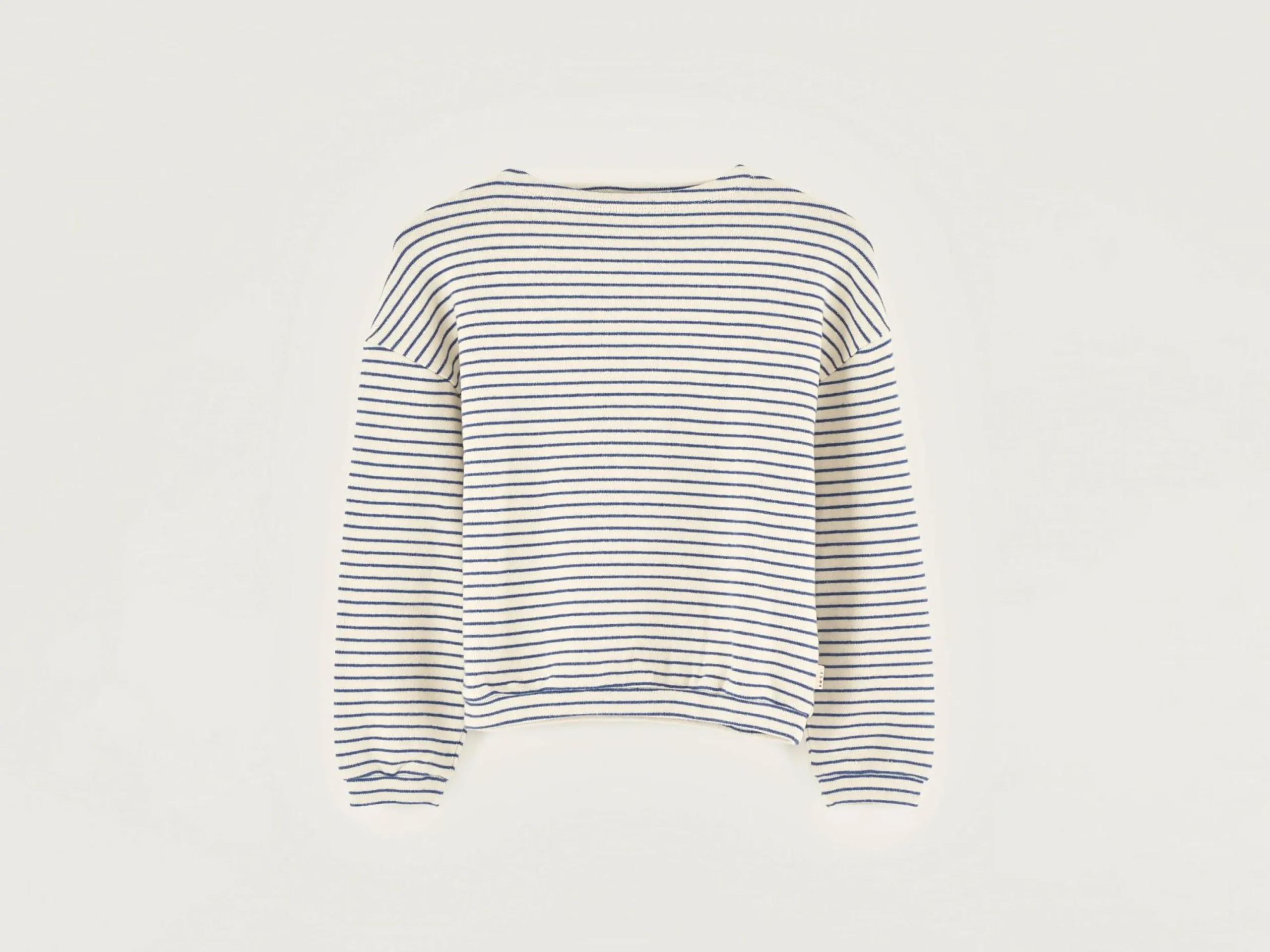 Los T-shirt met lange mouwen en dunne blauwe strepen.