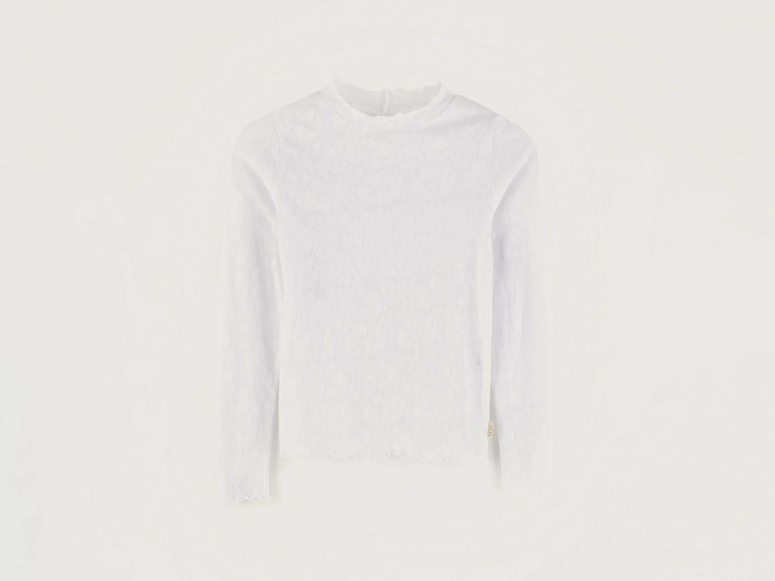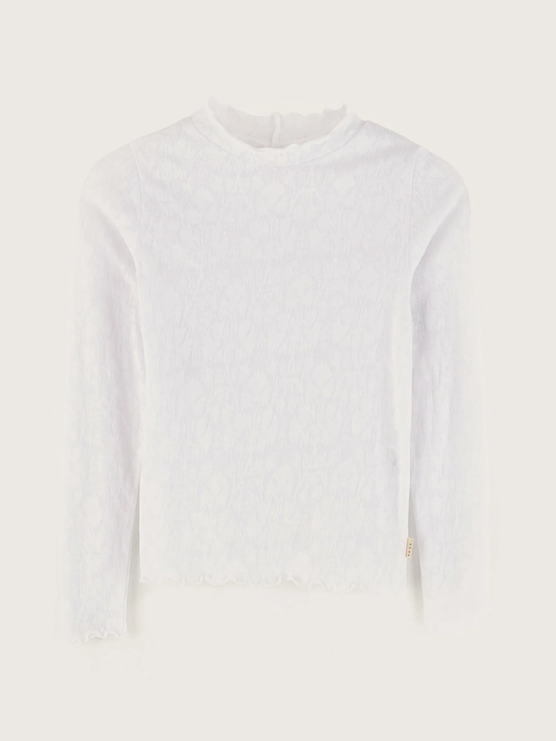 Wit, aansluitend T-shirt met lange mouwen en een ronde hals.
