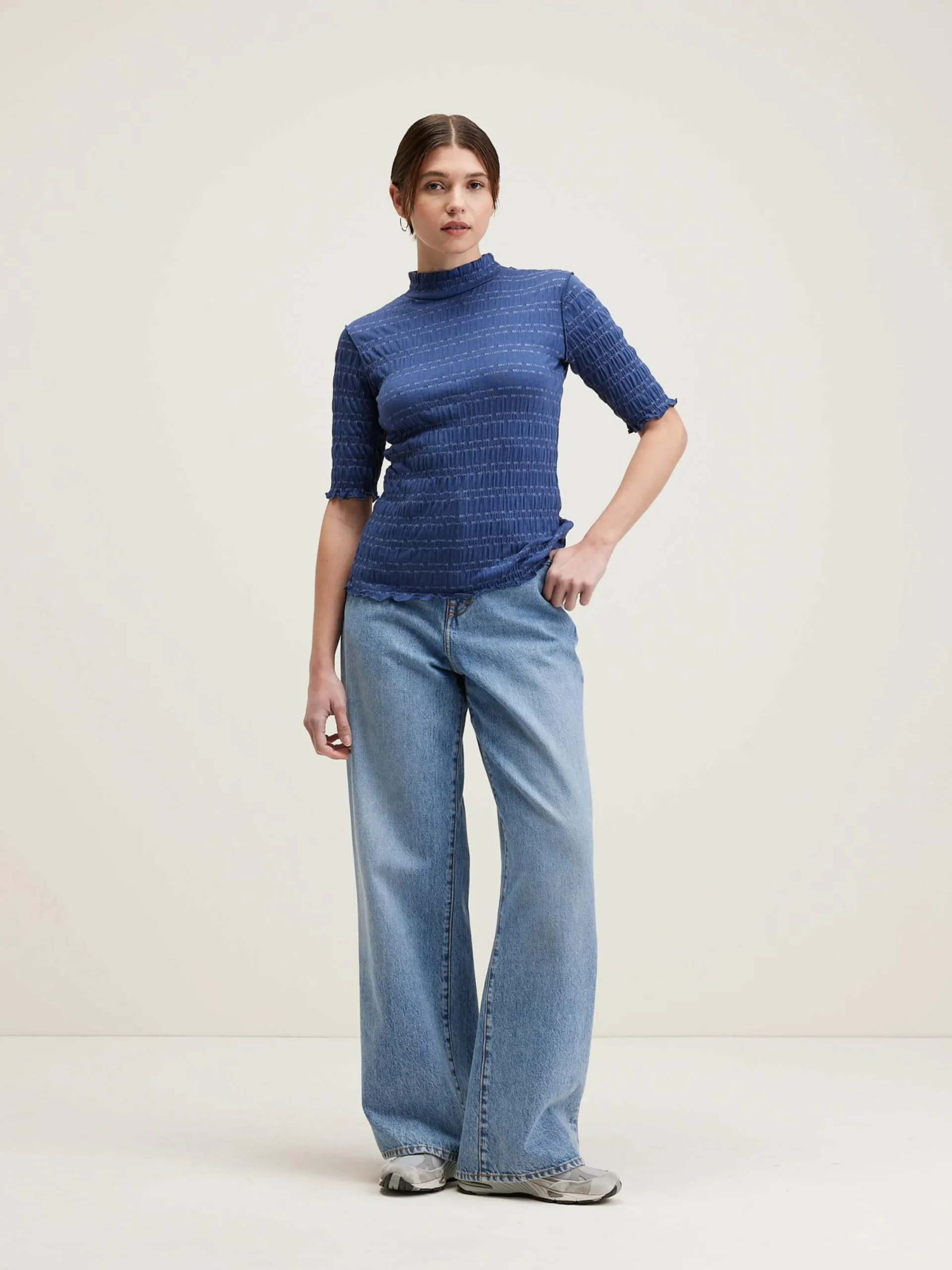Blauw slim fit t-shirt met halflange mouwen, gestreept met Bellerose logo.