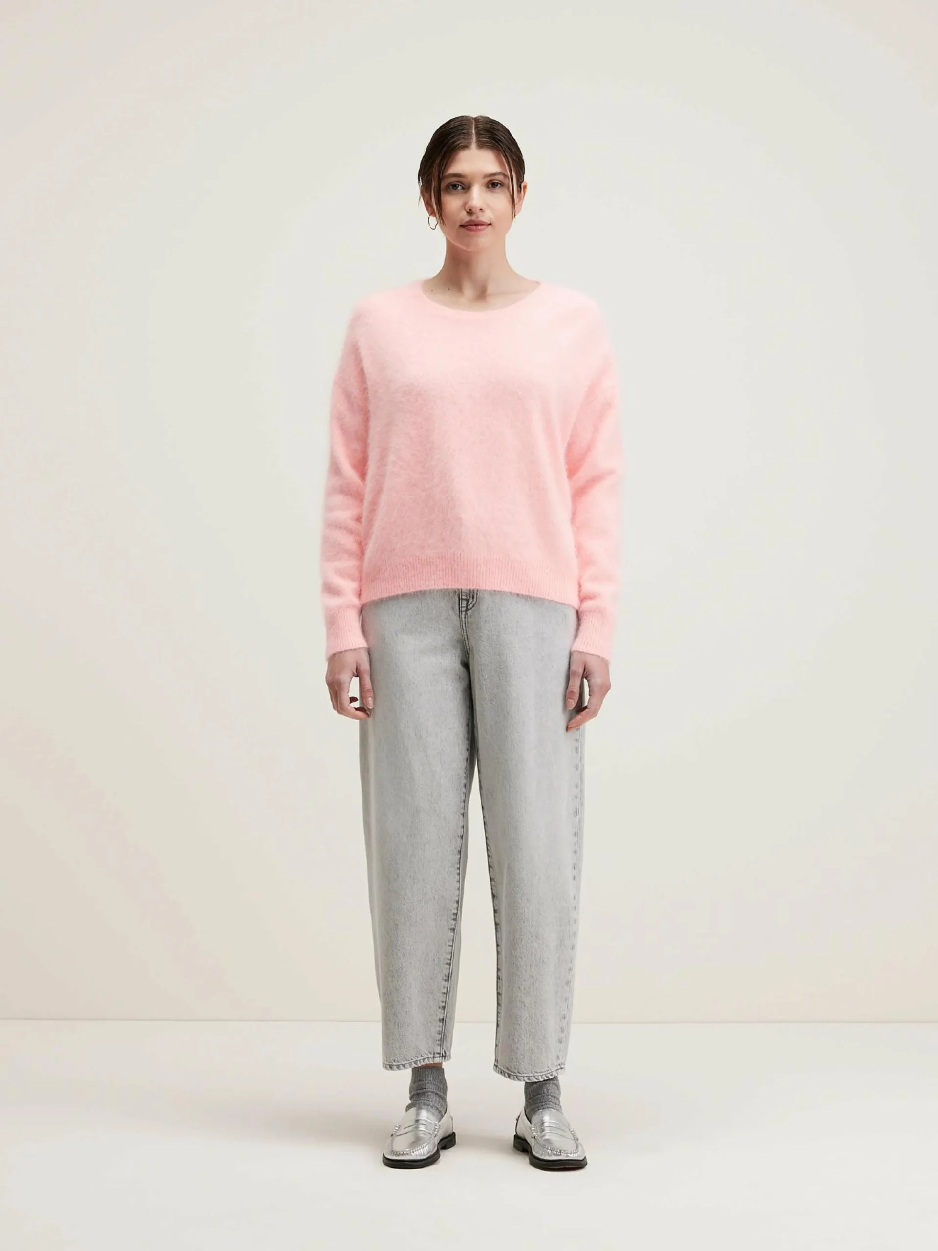 Oversizede jumper met ronde hals, van afgewassen roze angoramix.